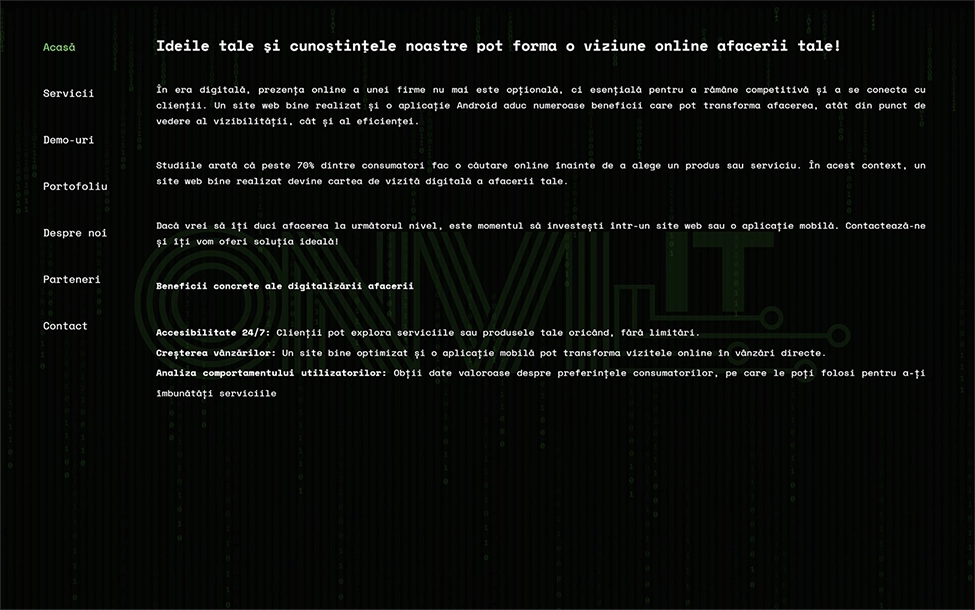 Într-o lume digitală în continuă evoluție, un website bine construit este esențial pentru succesul oricărei afaceri. Fie că vorbim despre un site de prezentare pentru a-ți consolida imaginea profesională sau despre un magazin online care să îți deschidă porțile către clienți din întreaga lume, prezența online joacă un rol crucial în creșterea afacerii tale.